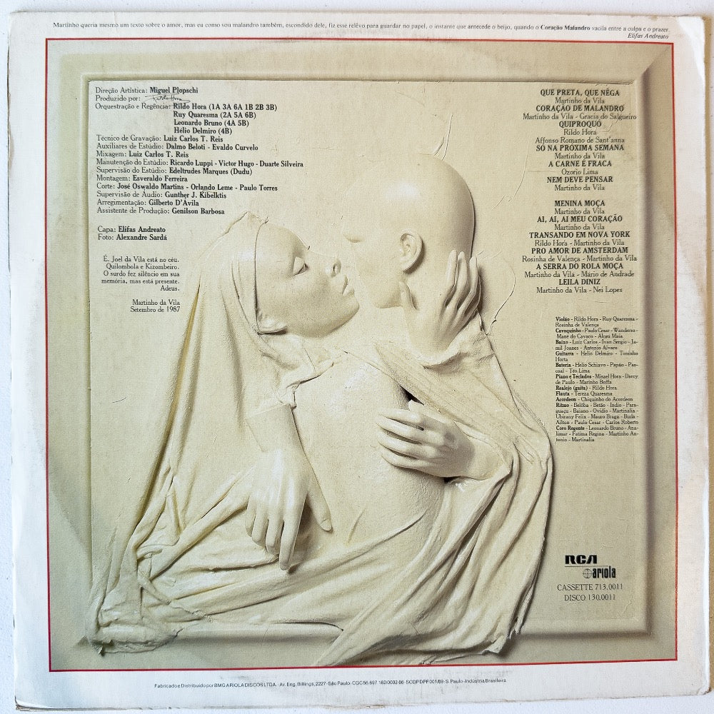 Descubra o encanto do samba brasileiro com o LP "Coração Malandro" de Martinho Da Vila. Lançado pela renomada gravadora RCA Victor, este álbum transporta você para o coração do Brasil com suas melodias envolventes e letras poéticas. Martinho Da Vila, um dos ícones do samba, traz neste disco uma coleção de faixas que celebram a cultura e a alma brasileira. Ideal para os amantes da música em vinil, "Coração Malandro" é uma peça essencial para sua coleção, oferecendo uma experiência auditiva rica e autêntica. Perfeito para momentos de descontração ou para animar suas reuniões sociais, este vinil é um convite para deixar-se levar pelo ritmo e pela emoção do samba.