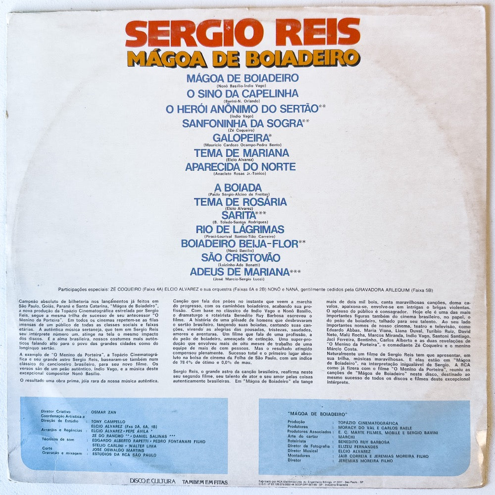 Descubra a essência autêntica da música sertaneja com o disco de vinil "Mágoa De Boiadeiro" do renomado artista brasileiro Sérgio Reis. Este LP, lançado sob o selo prestigiado da RCA Victor, captura a alma e as emoções do campo brasileiro, transportando o ouvinte para um universo de histórias e sentimentos. Com canções que refletem a vida do boiadeiro e a saudade da terra, este álbum é uma obra-prima que não pode faltar na coleção de qualquer amante da música sertaneja. Adquira já e vivencie a magia de Sérgio Reis em sua forma mais pura e envolvente.